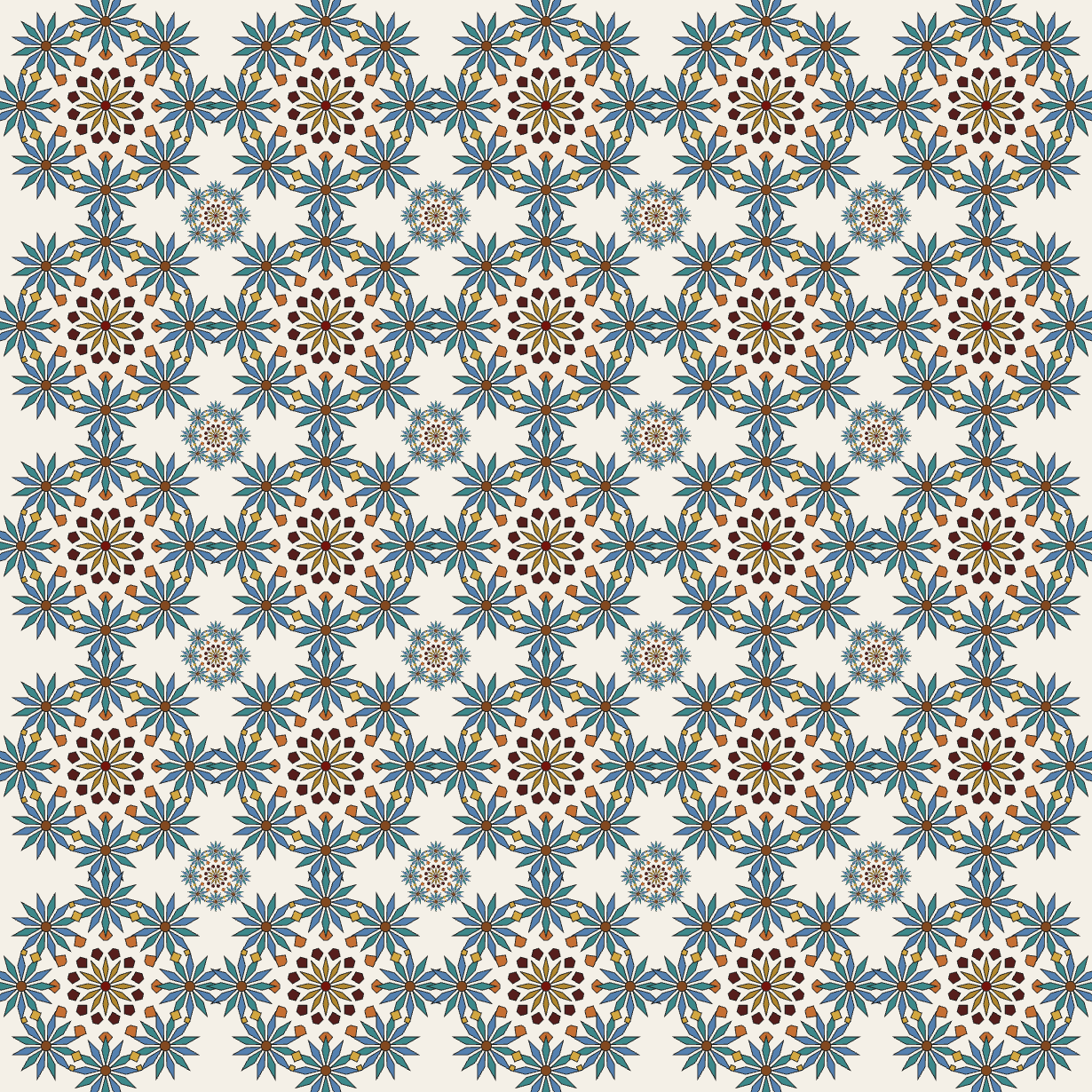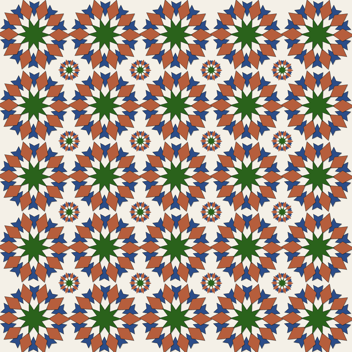 Voici un générateur de motifs Zellige et Tazouaqt (en essayant de retrouver les algorithmes mathématiques sous-jacents à ces formes) permettant des créer des motifs répétitifs vectoriels (il sauve en .svg) , je vous laisse vous amuser avec : https://zouaq.floot.app/